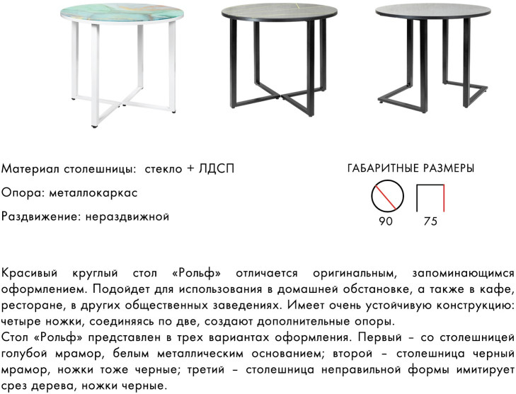 - Стол Рольф 900 круглый черный мрамор