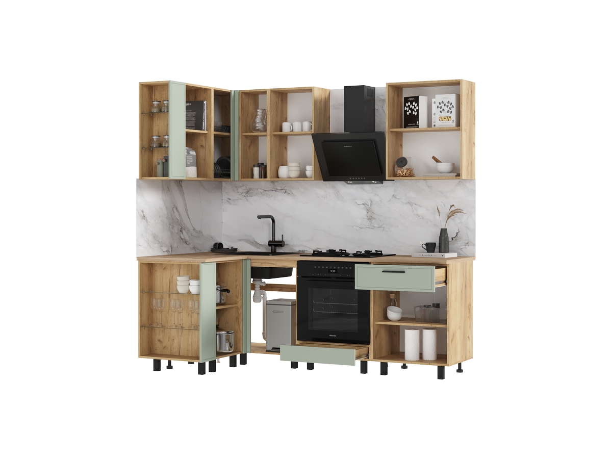 - Кухня Оливия NEW 1,4*2,4 Кашемир, Дуб Крафт