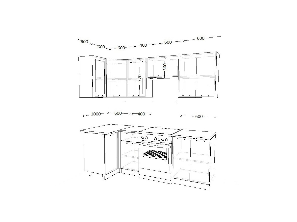 - высота верхних шкафов 720 мм