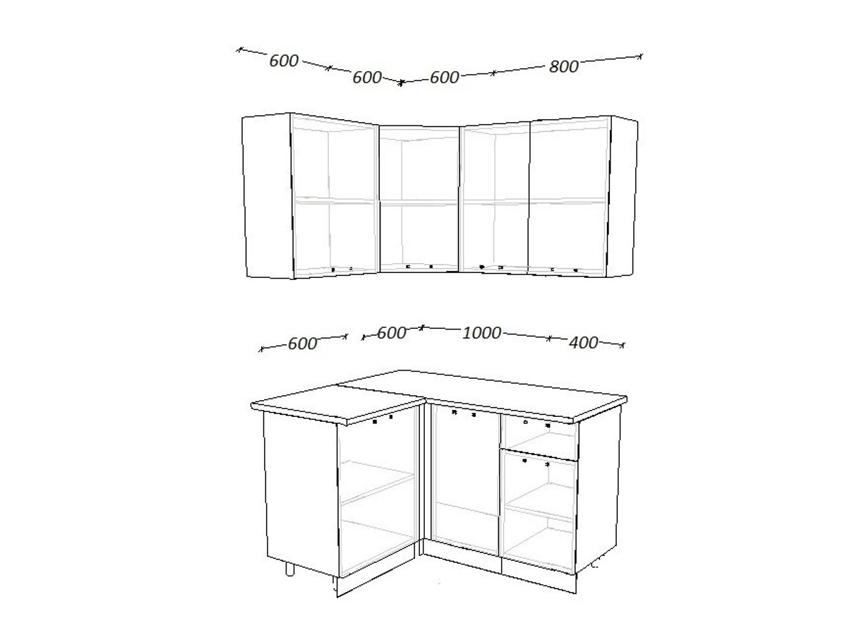 - высота верхних шкафов 720 мм