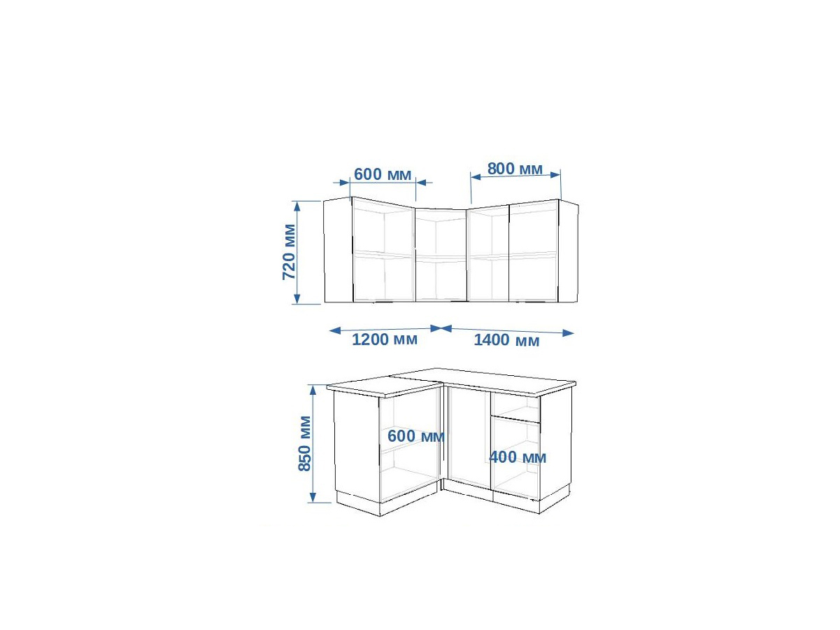 - Кухонный гарнитур арт 2 Лайн Обсидиан 1200х1400 мм