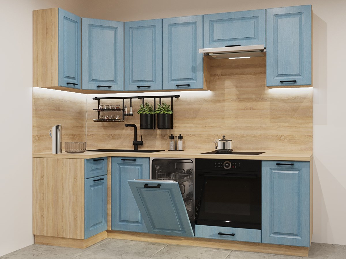 - Кухонный гарнитур арт 21 Роял Вуд Голубой Вегас 1000х2450 мм