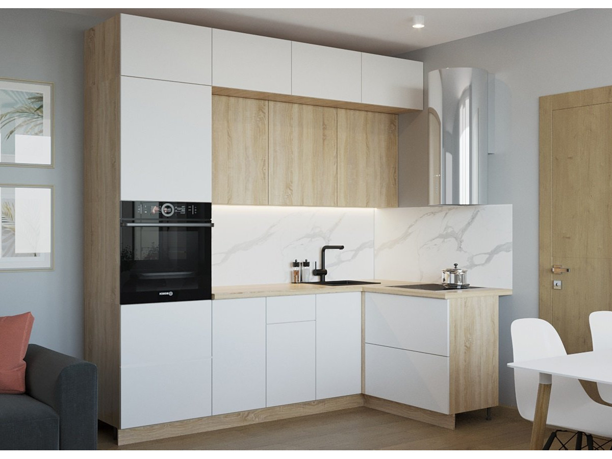 - Кухонный гарнитур арт 3 Тальк Дуб сонома 2400х1400 мм