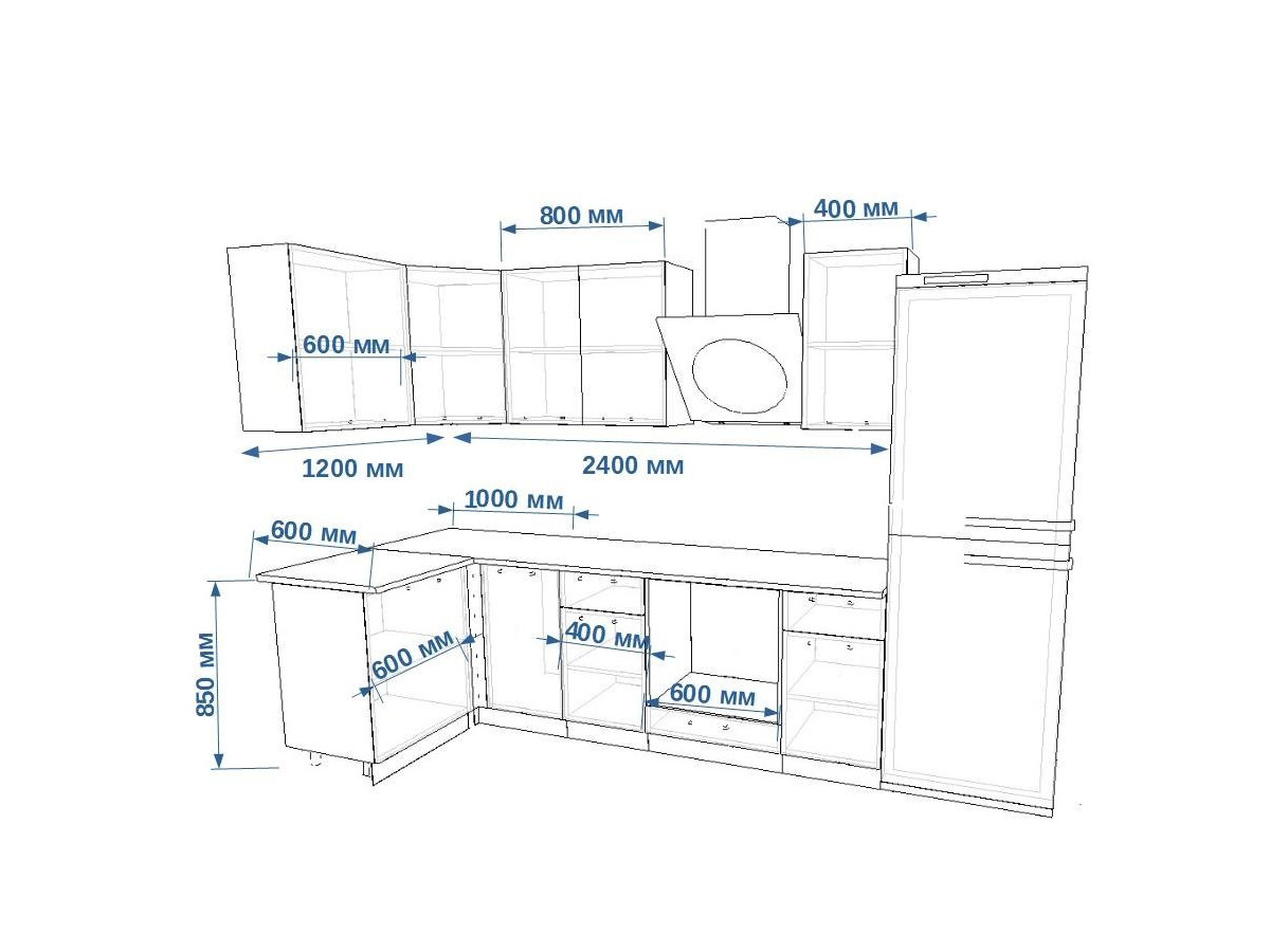 - высота верхних шкафов 720 мм