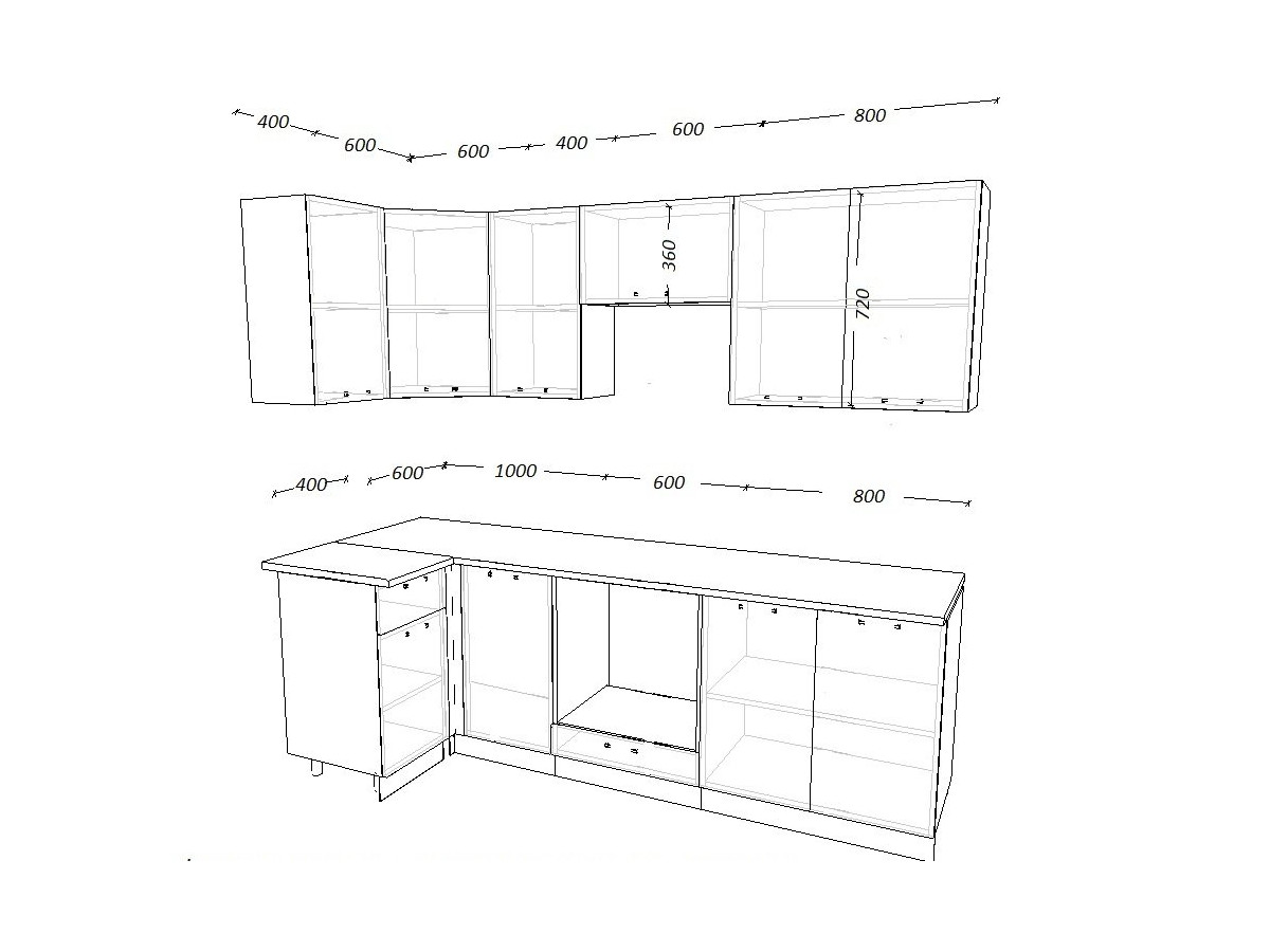 - высота верхних шкафов 720 мм