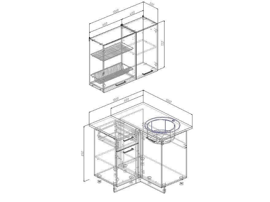 - Столешница: ЛДСП 26мм со скругленным краем (в пластике)