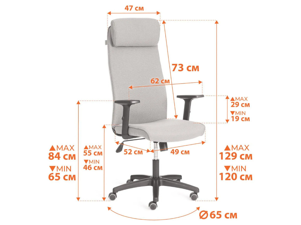 - Кресло оснащено 5-лучевой полиамидной крестовиной диаметром 650 мм