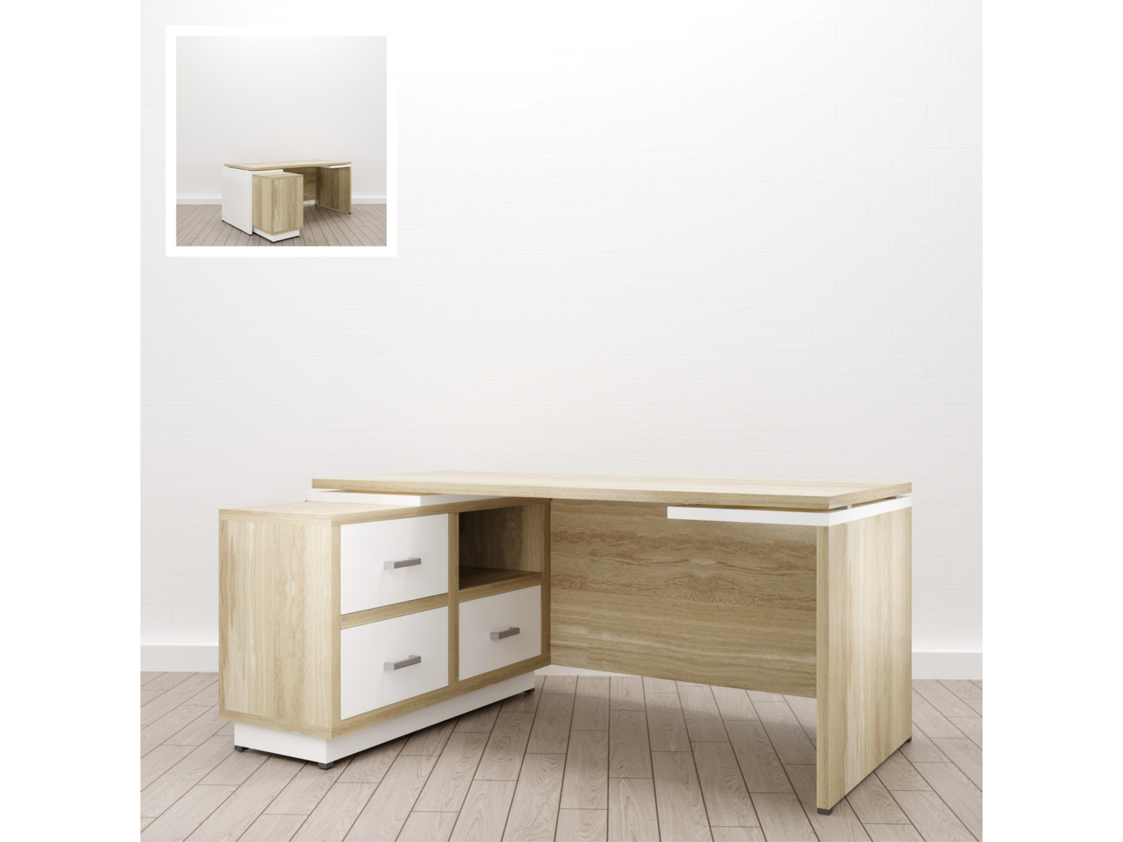 - Стол для руководителя Дизайн Левый (Е-6) Eclectic eco Дуб рокпайл-белый