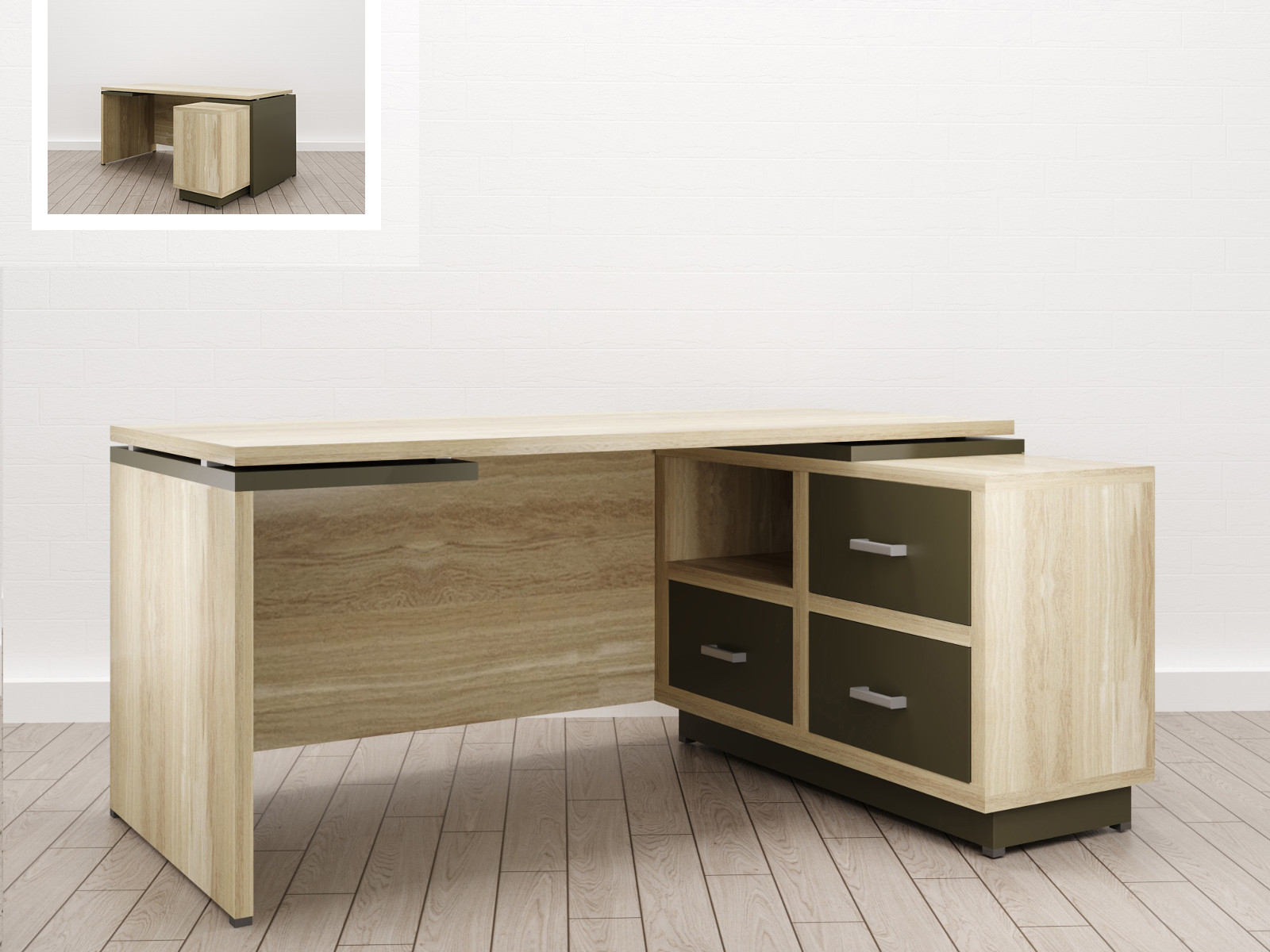 - Стол для руководителя Дизайн Правый (Е-5) Eclectic eco Дуб рокпайл-Скала