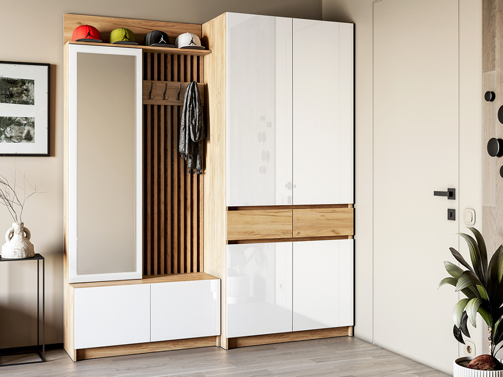 - Модульная прихожая Стоуби с двухдверным шкафом фасад глянец белый