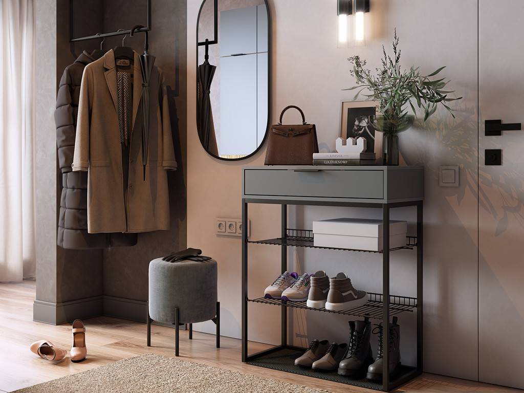 Модная консоль для обуви в стиле Лофт из металл профиля, легкая.