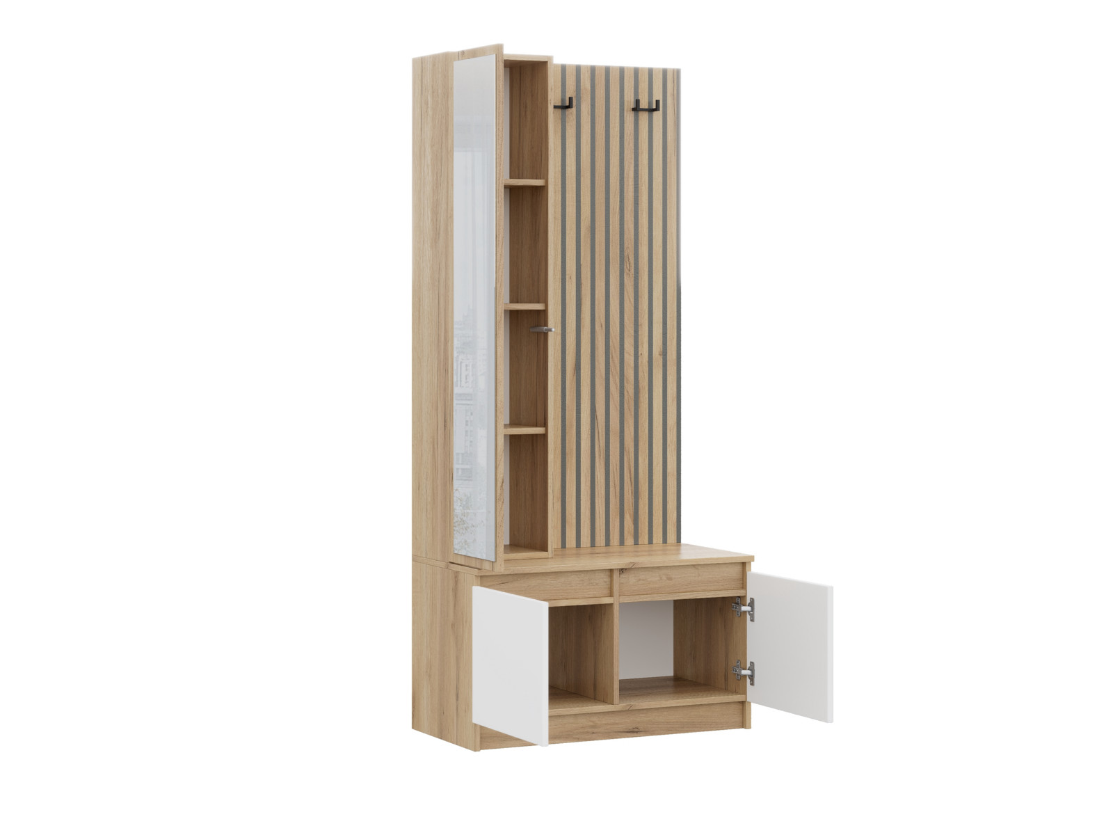 - Щит для одежды с крючками и фотопечатью (имитация реек).