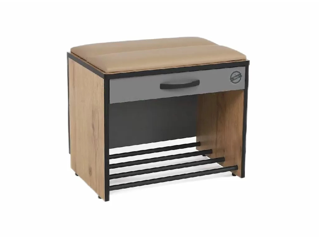 Тумба с сиденьем стеганная экокожа с выдвижным ящиком и открытой полкой для обуви.