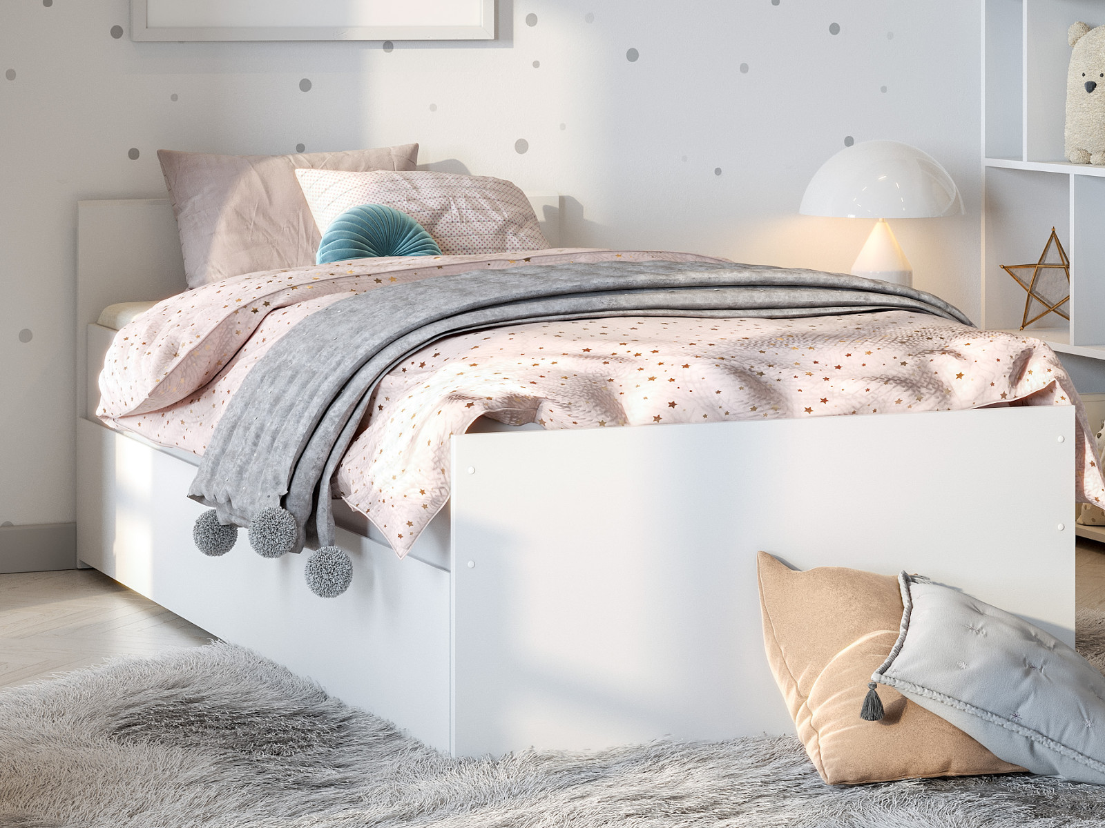 В комплект входит: Кровать + Основание под матрац 0,9*2,0м (ЛДСП)+ящик