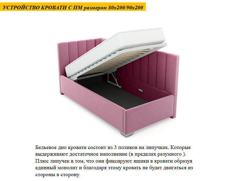 Кровать Глэдис 90х200 мм с подъемным основанием
