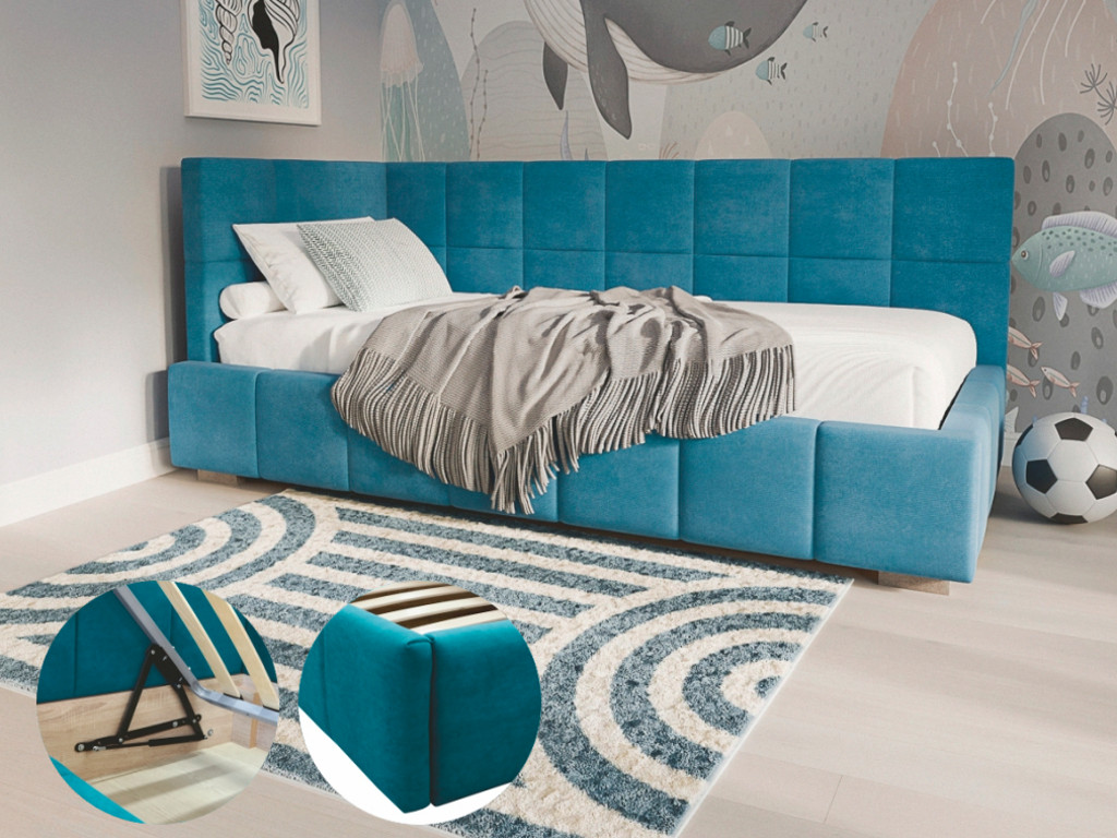 Кровать имеет подъемное ортопедическое основание с дном из МДФ.