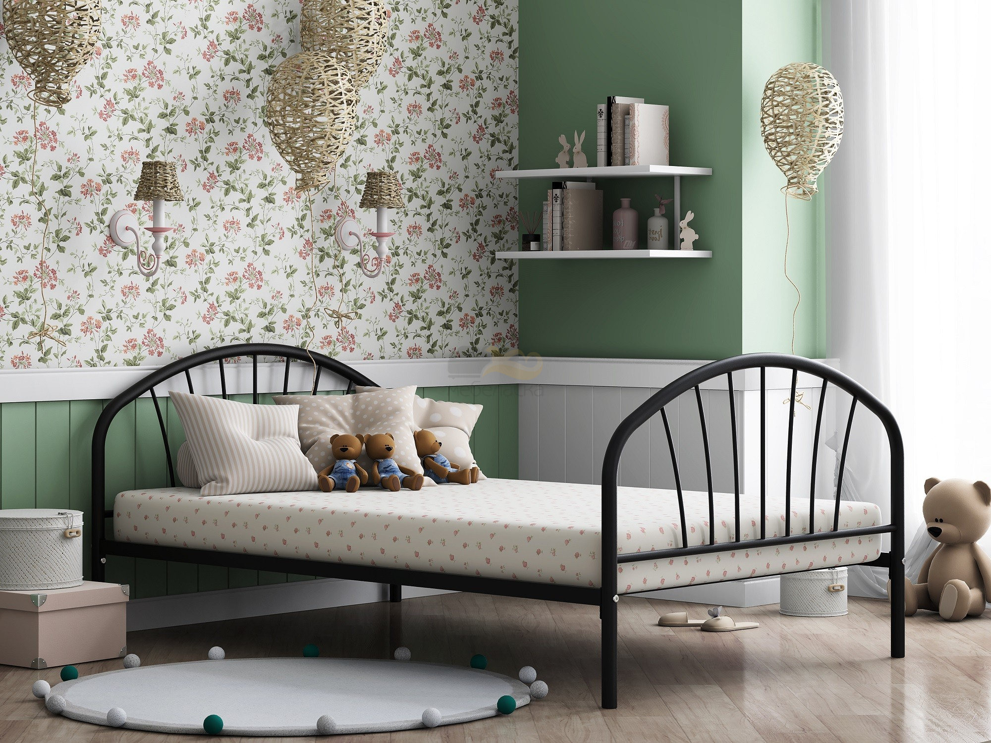 - Кровать металлическая Эвора 120 Черный