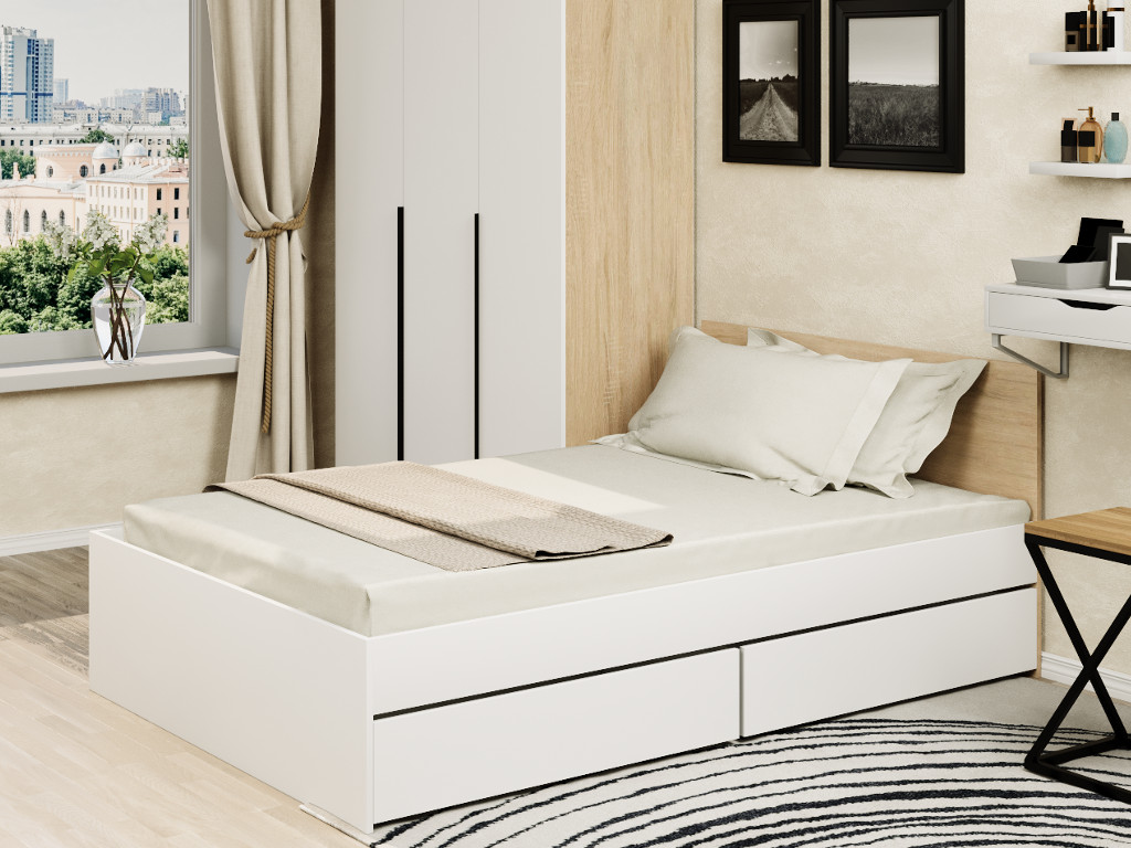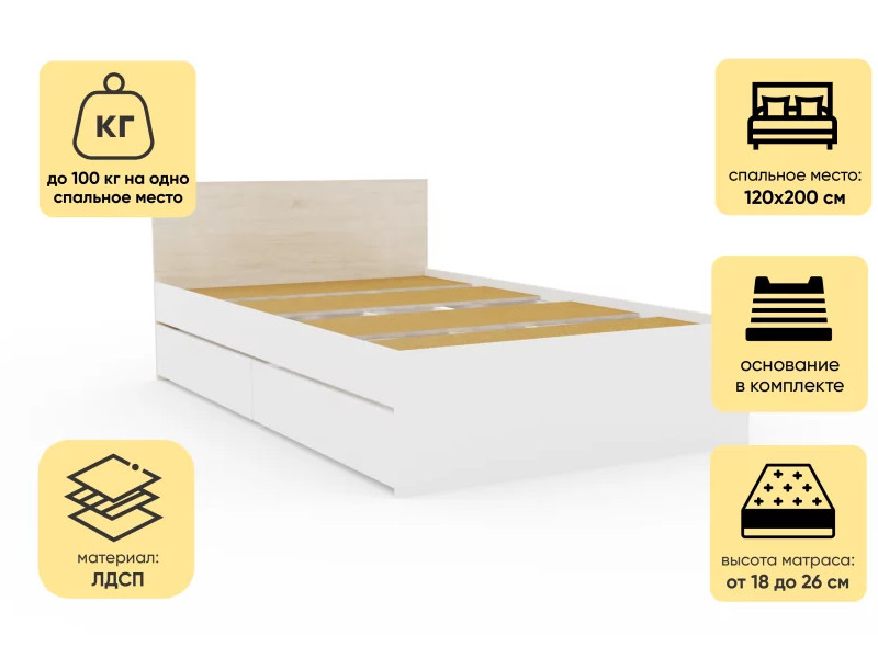 - Кровать Монблан с ящиками 120х200 см Белый Шагрень