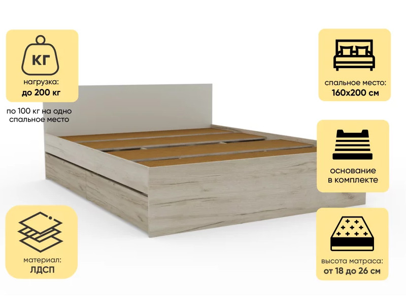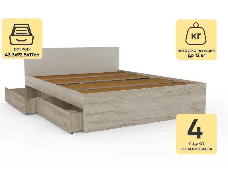 - Кровать Монблан с ящиками 160х200 см Кашемир