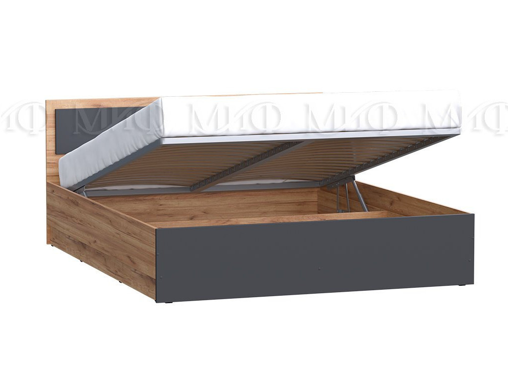 - Кровать с подъемным механизмом 1400 Мартина Графит, Дуб крафт