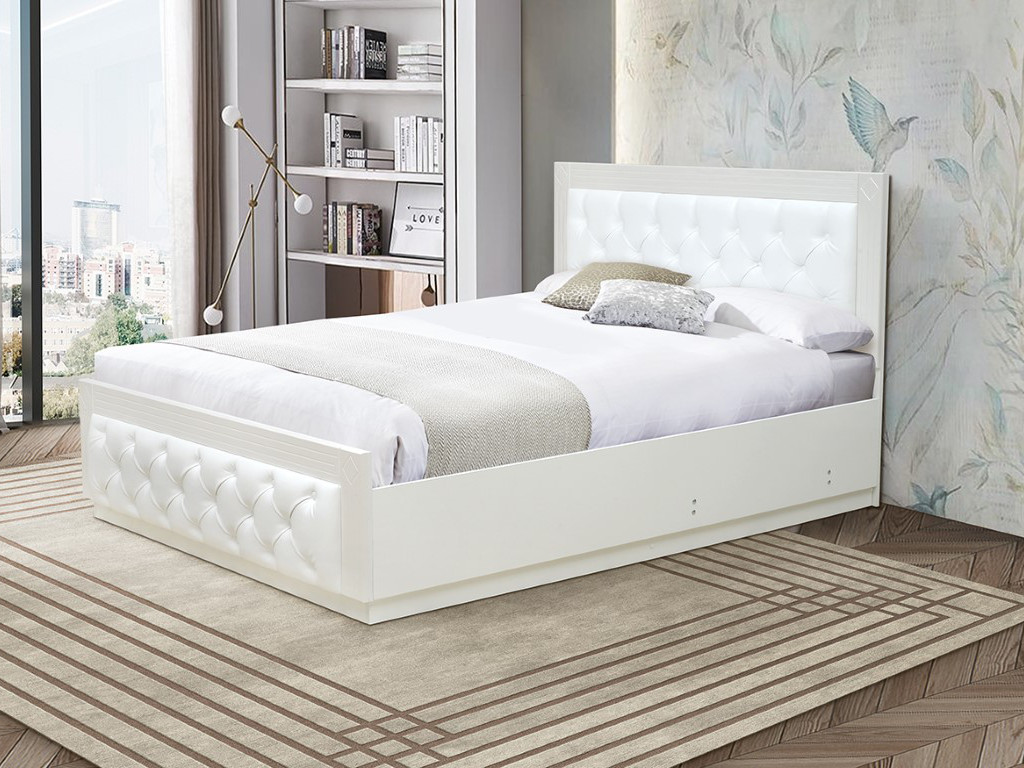 - Кровать Венеция 13.2 1600 с ортопедическим основанием кожзам белый
