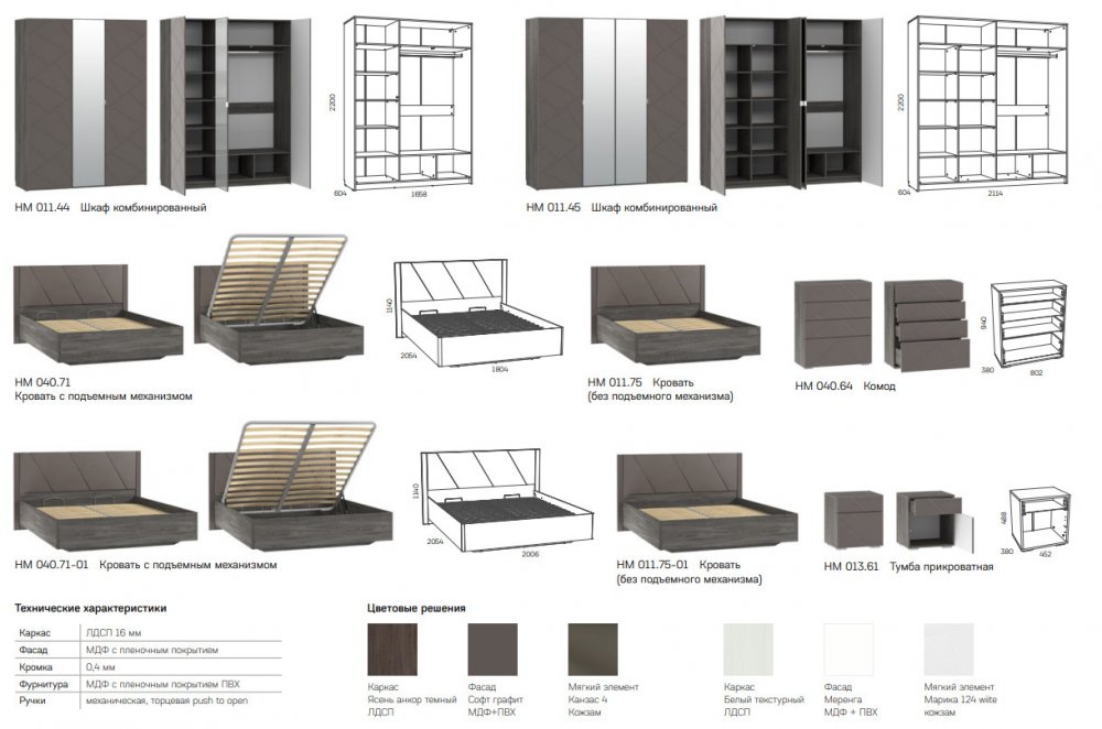 - НМ 011.44 Шкаф комбинированный Ш 1658 X Г 604 X В 2200 мм - 53310 руб