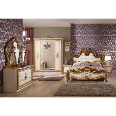 Цена указана за комплектацию на главном фото (тумба прикроватная - 2 шт., кровать со спальным местом 1600*2000 мм, комод с зеркалом и 4-х дверный шкаф.)