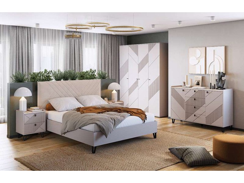 Цена за комплект: Зеркало, Туалетный столик, Тумба прикроватная (2шт), Шкаф 3х дверный, Кровать 1400 спинка МДФ, Основание для кровати ЛАЙТ 1400