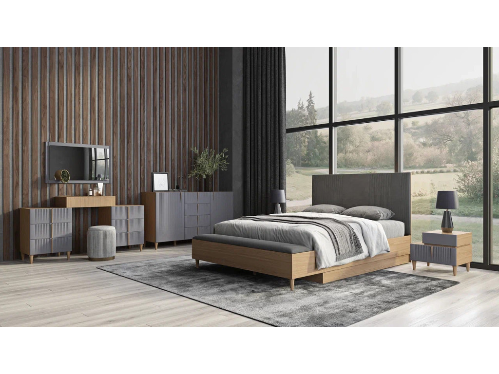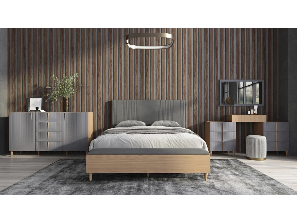 Цена за комплект: Кровать 1600 с банкеткой, Тумба прикроватная, Тумба малая, Комод 2 двери, Зеркало, Стол туалетный 1698
