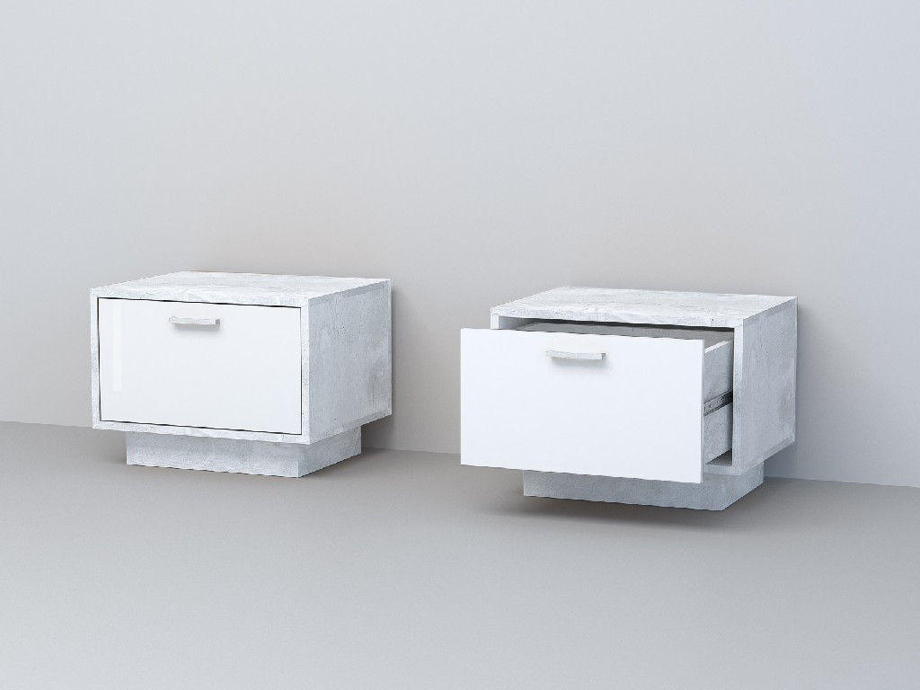 Тумба прикроватная Эго Т-5 бетон светлый/белый глянец на цоколе