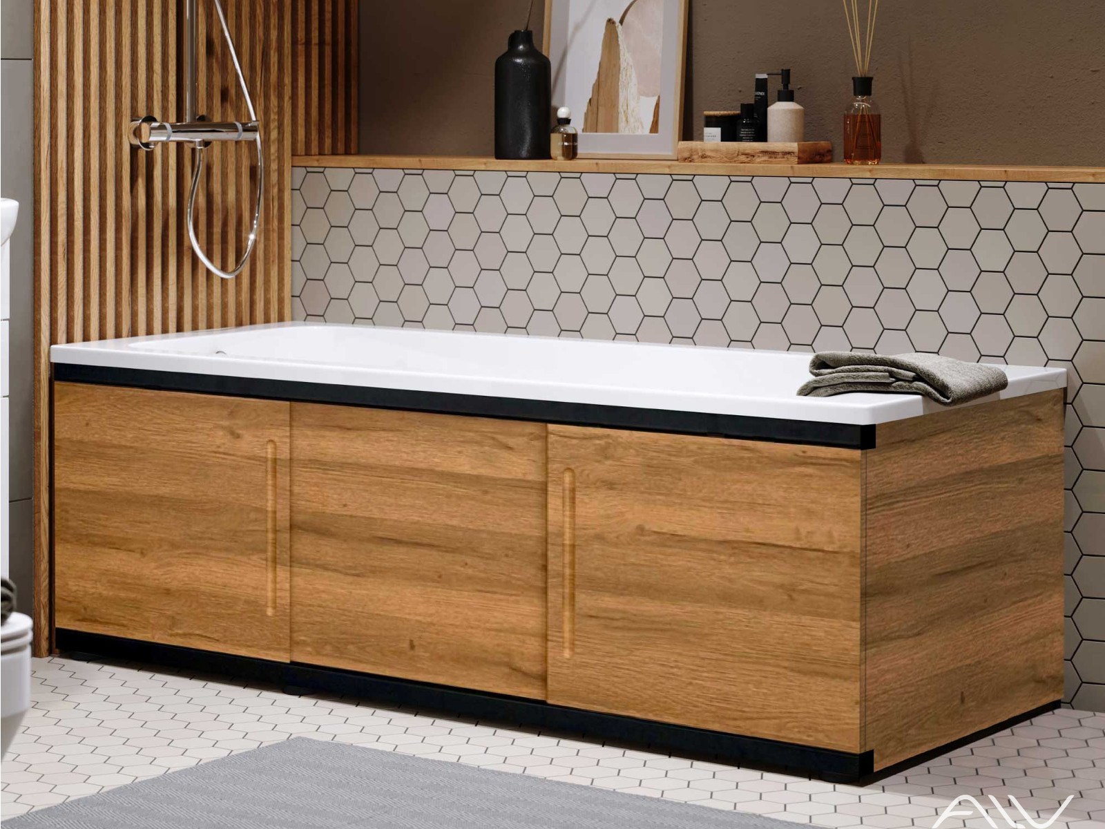 - Экран под ванну МДФ Alt Black 1500 мм дуб