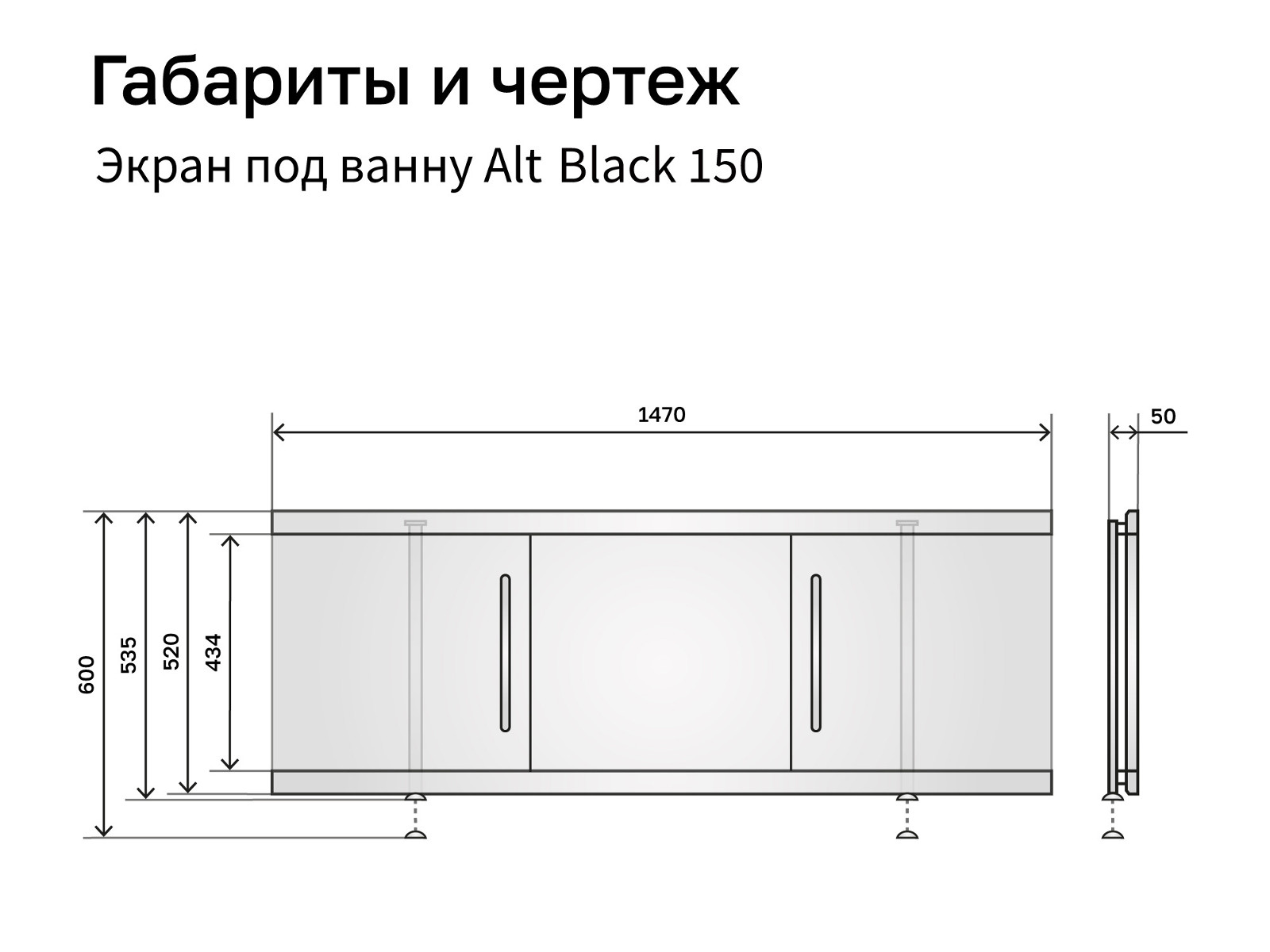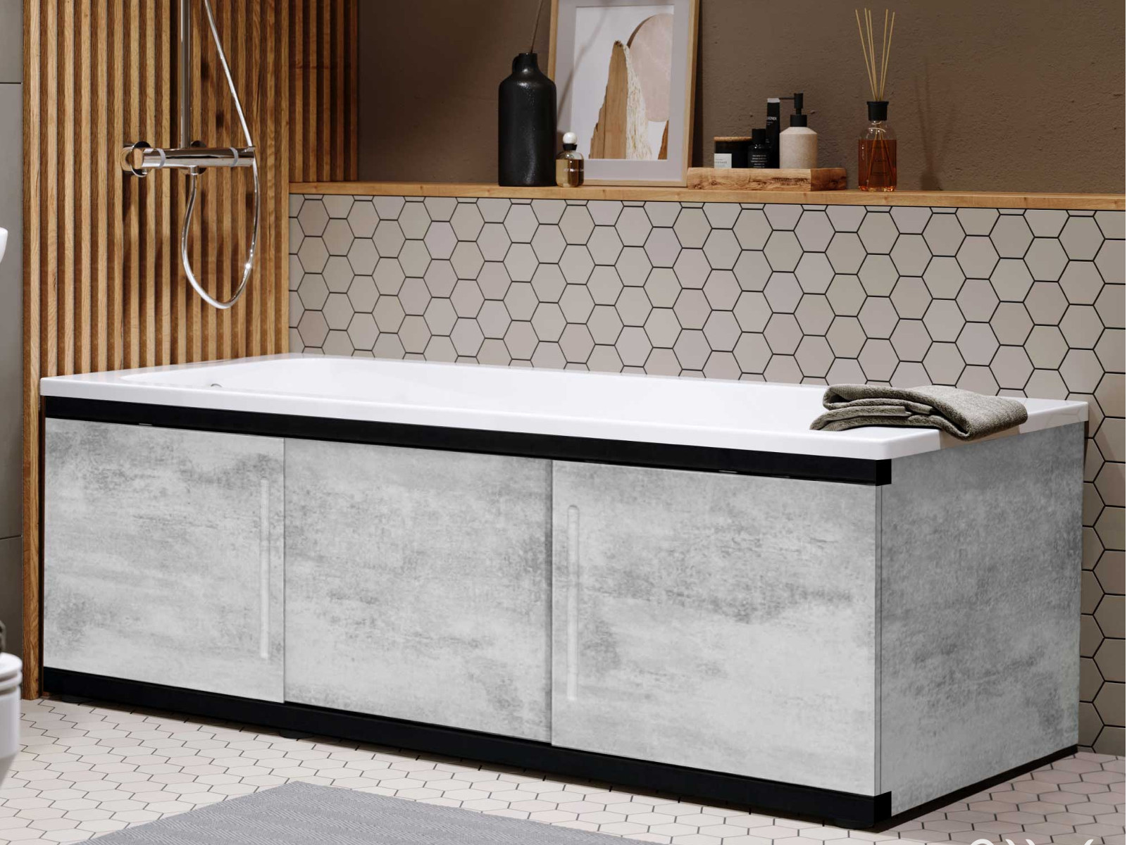 - Экран под ванну МДФ Alt Black 1500 мм серый бетон