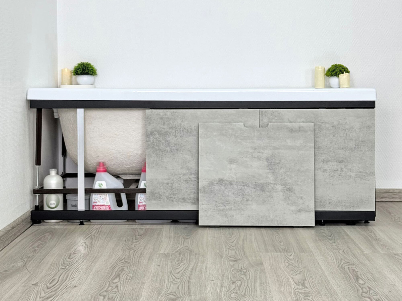 - Экран под ванну МДФ Rita Black 1600 мм серый бетон
