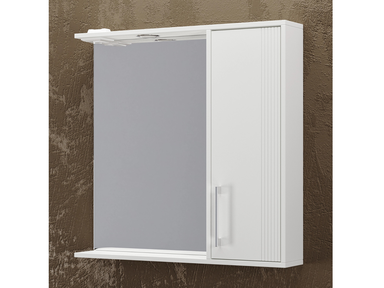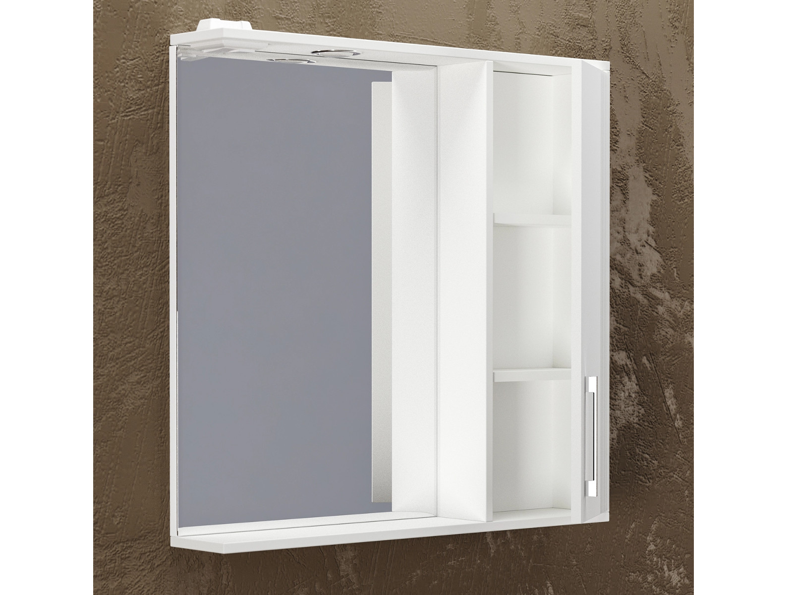 - Шкаф-зеркало Альба 80 со светильником правый суфле
