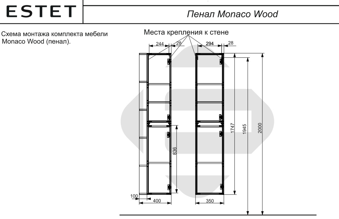 - Пенал подвесной Monaco Wood с открытой полкой левосторонний