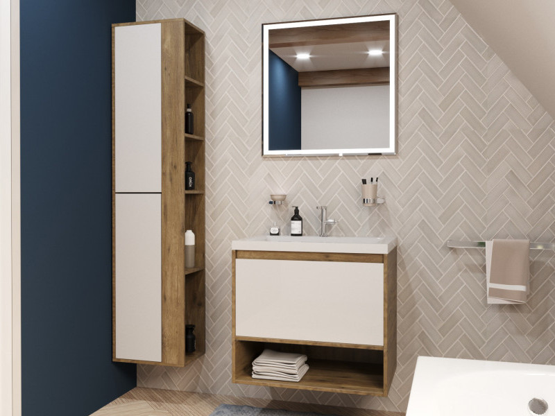Пенал подвесной Monaco Wood с открытой полкой правосторонний