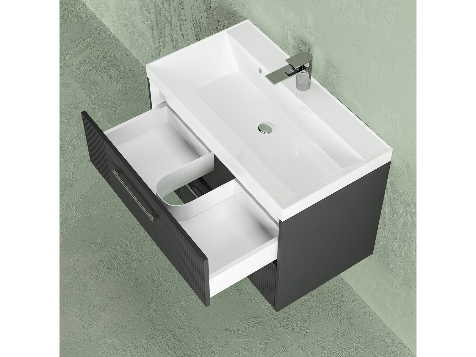- Тумба Альба 80 подвесная 2 ящика раковина Комфорт 80 антрацит