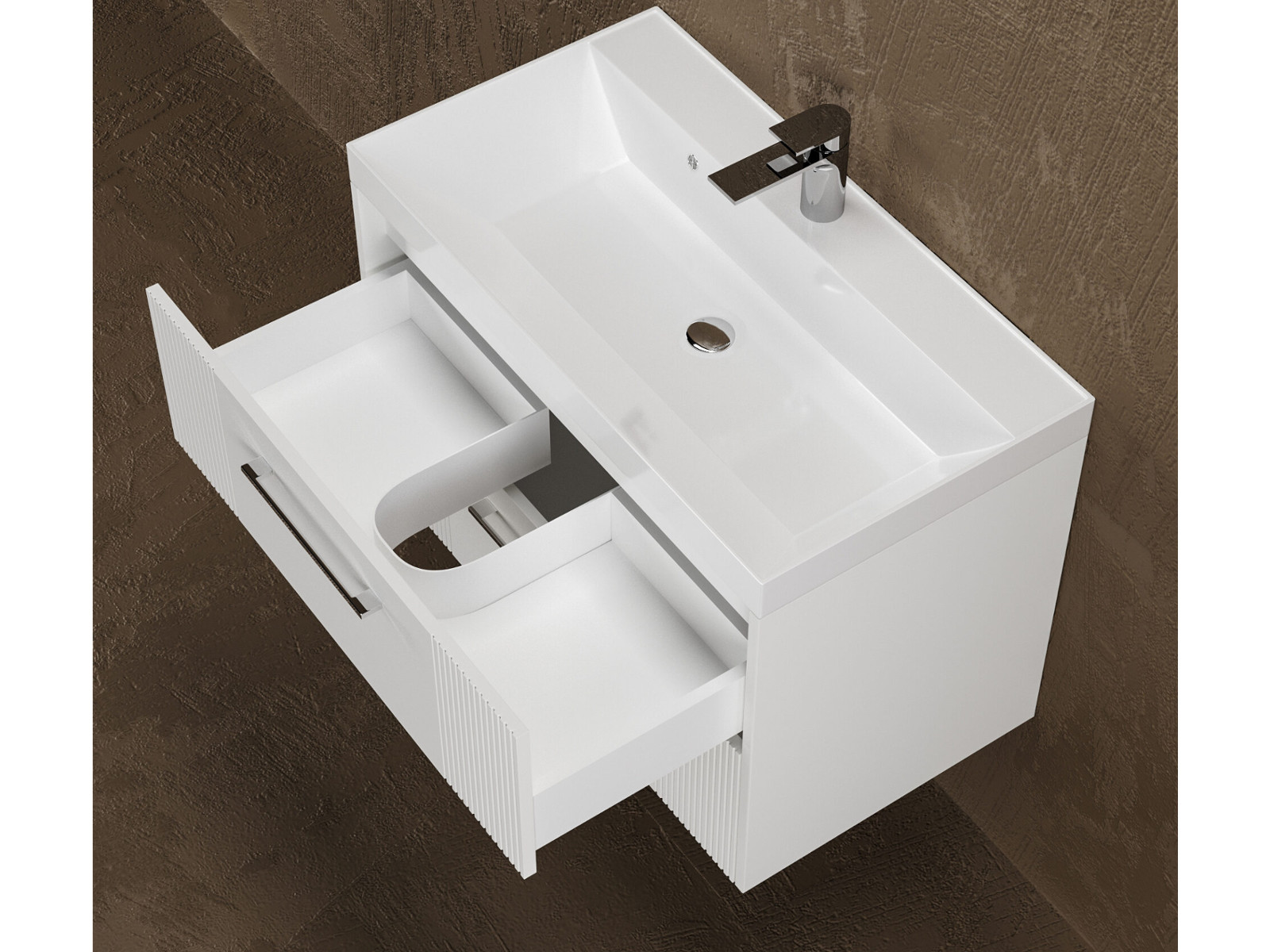 - Тумба Альба 80 подвесная 2 ящика раковина Комфорт 80 суфле