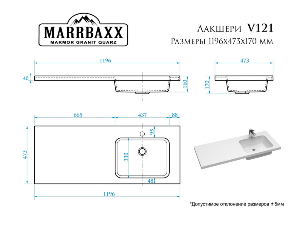 - Раковина Лакшери V120 левая (кронштейн и сифон в комплекте) ИЛИ Раковина Лакшери V121 правая (кронштейн и сифон в комплекте)