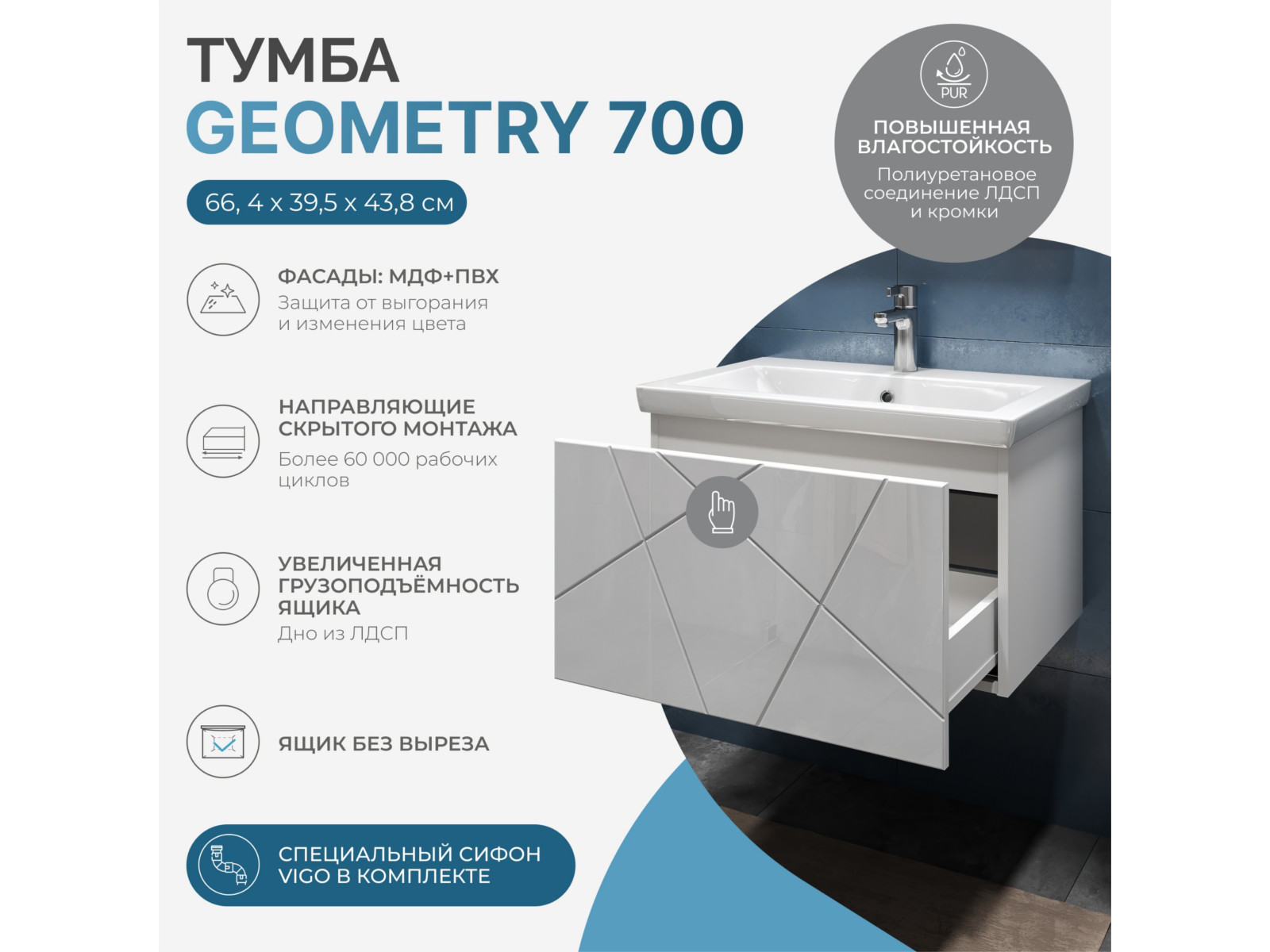 Размер тумбы с раковиной (ШxГxВ): 700x450x420 мм