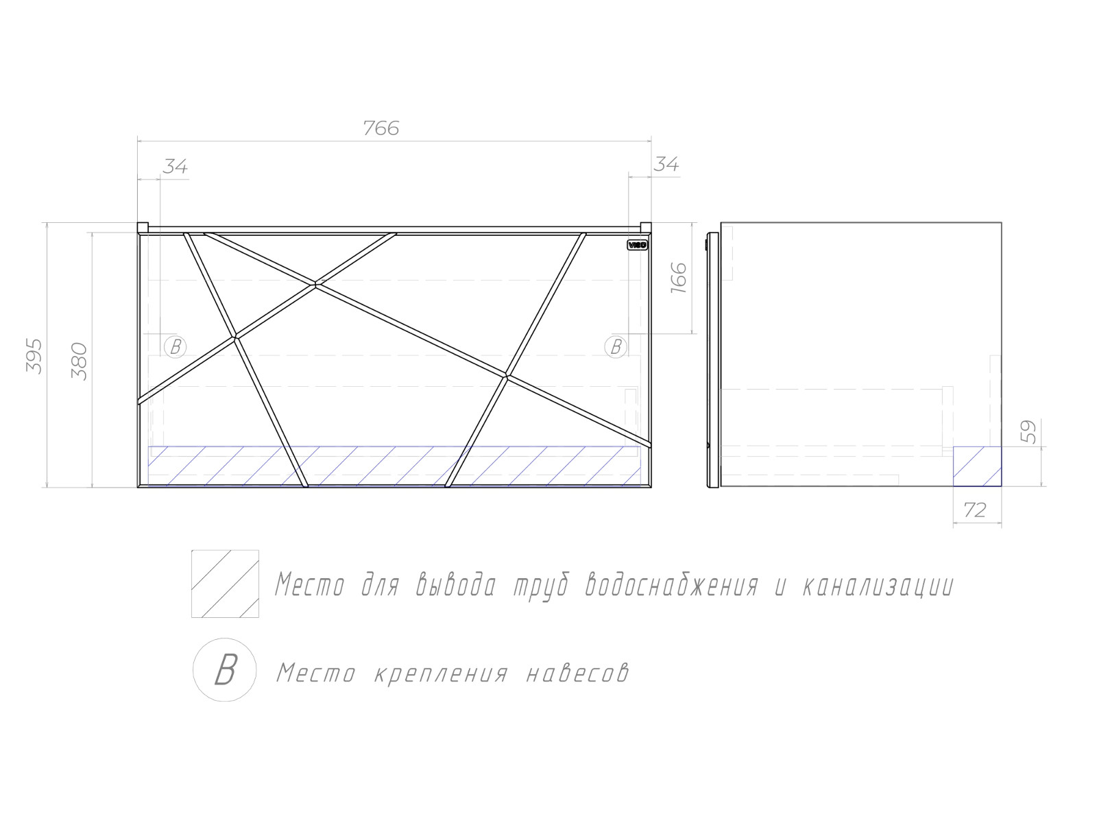 - Тумба Geometry 800-0-1 Como навесная бетон