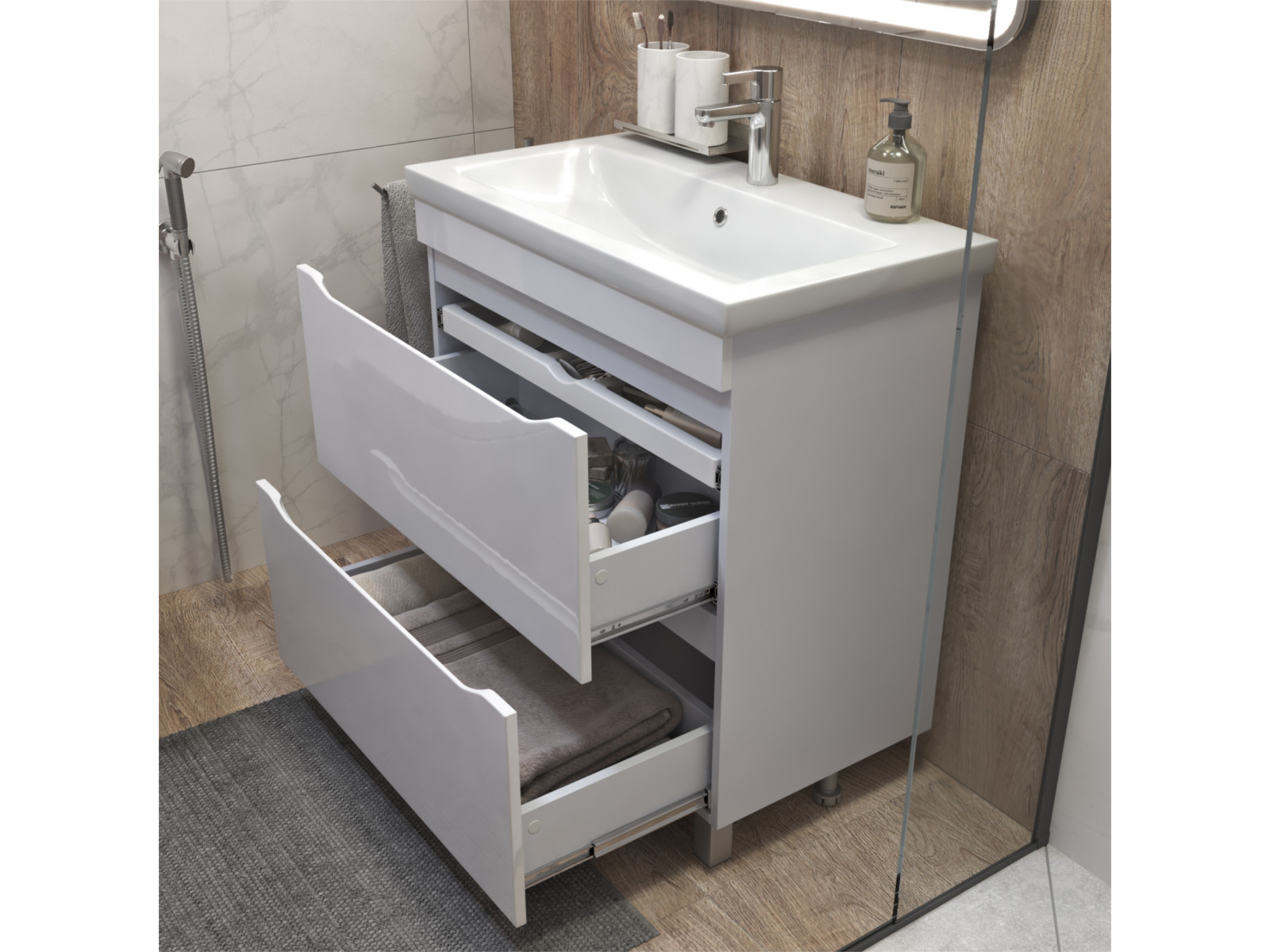 Размер тумбы с раковиной (ШxГxВ): 800x450x850 мм