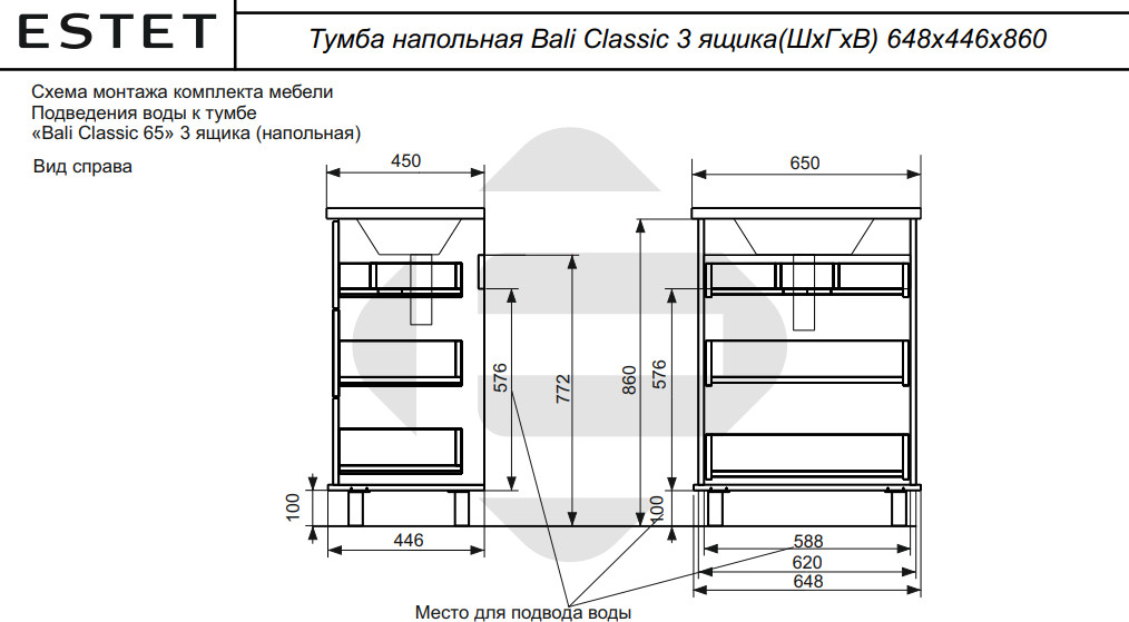- Тумба с раковиной Bali Classic 650 напольная 3 ящика