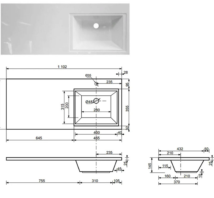 - Тумба с раковиной Dallas Luxe 1100 напольная 3 ящика правая