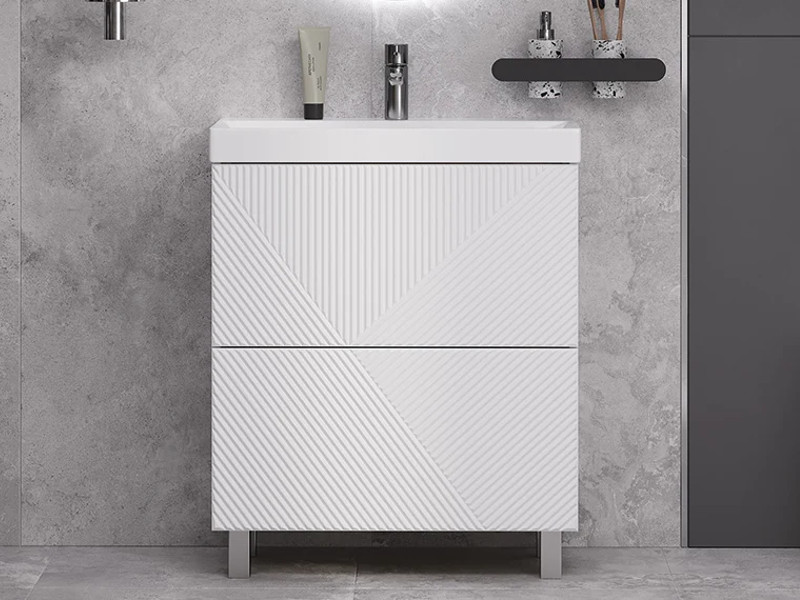 Материалы тумбы: МДФ, влагостойкая ЛДСП, полимерное покрытие ПВХ, врезная ручка, европейская фурнитура