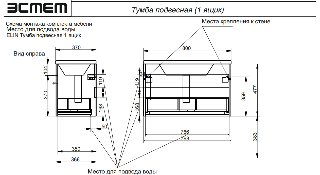 - Тумба с раковиной Elin 800 навесная 1 ящик