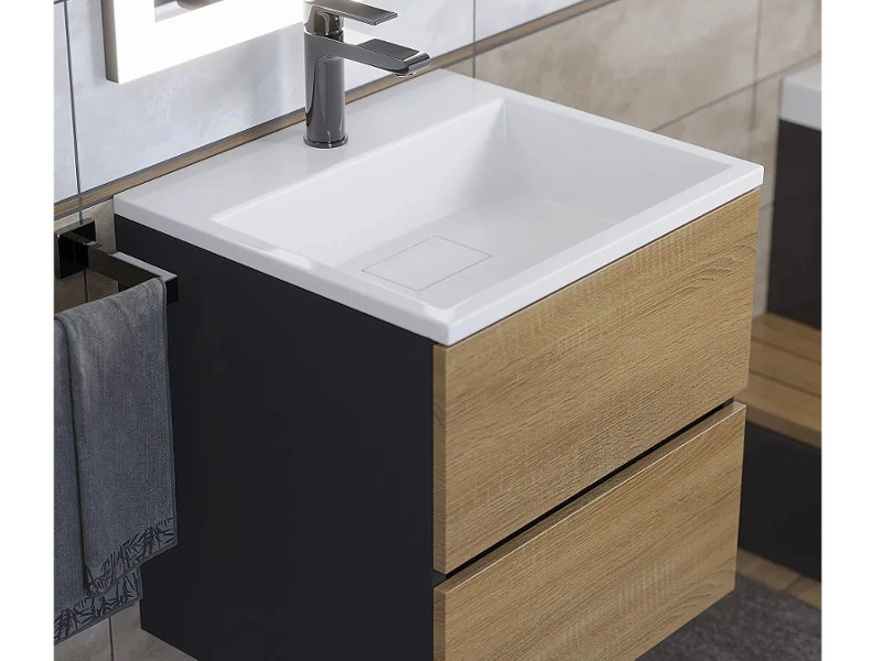 Тумба с раковиной Uperwood Barsa 50 см раковина белая-тумба черная/дуб сонома