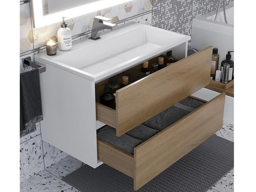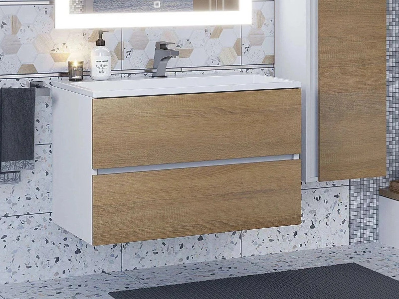 Тумба с раковиной Uperwood Barsa 80 см раковина белая-тумба белая/дуб сонома