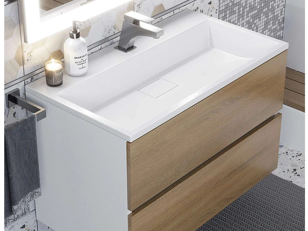 - Тумба с раковиной Uperwood Barsa 80 см раковина белая-тумба белая/дуб сонома