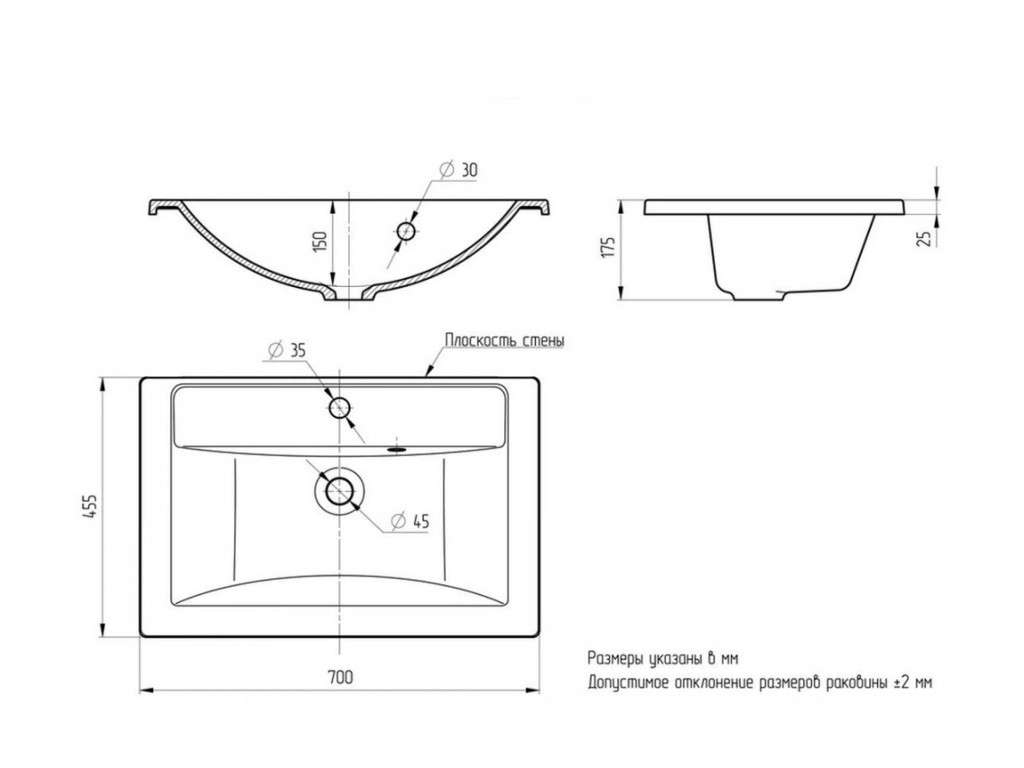 - Тумба с раковиной Uperwood Foster белая 70 см